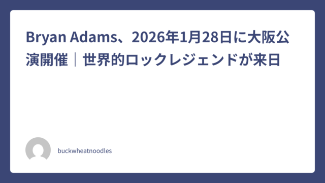 Bryan Adams、2026年1月28日に大阪公演開催|世界的ロックレジェンドが来日