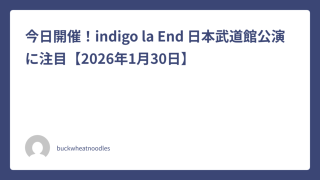 今日開催!indigo la End 日本武道館公演に注目【2026年1月30日】