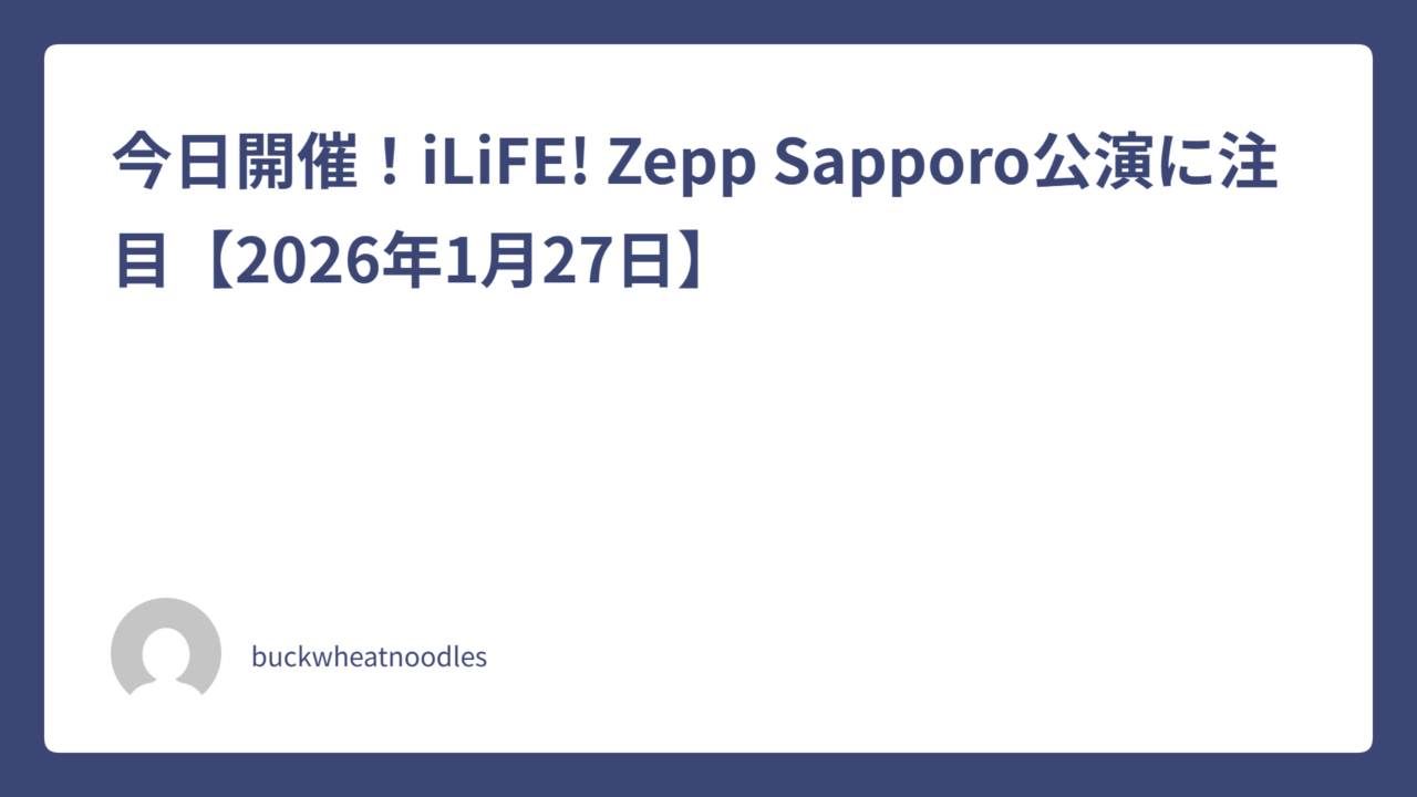 2026年1月27日に開催されるiLiFE!のZepp Sapporo公演は、ライブハウスならではの距離感と熱量を体感できる一夜になりそうです。冬の札幌で行われる公演として、音楽と空間がしっかりと噛み合った時間になることが期待されます。今日という一日を彩るライブとして、注目しておきたい公演です。