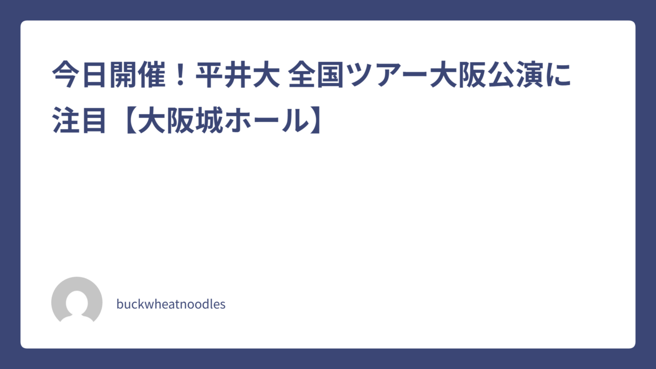 本日、平井大の全国ツアー大阪公演が大阪城ホールで開催されます。国内アーティストの公式ツアーとして各地で注目を集めている今回のツアーは、心地よいサウンドと等身大の言葉で幅広い層から支持されています。この記事では、今日開催される平井大の大阪公演について、ライブの魅力や会場情報を中心に整理して紹介します。