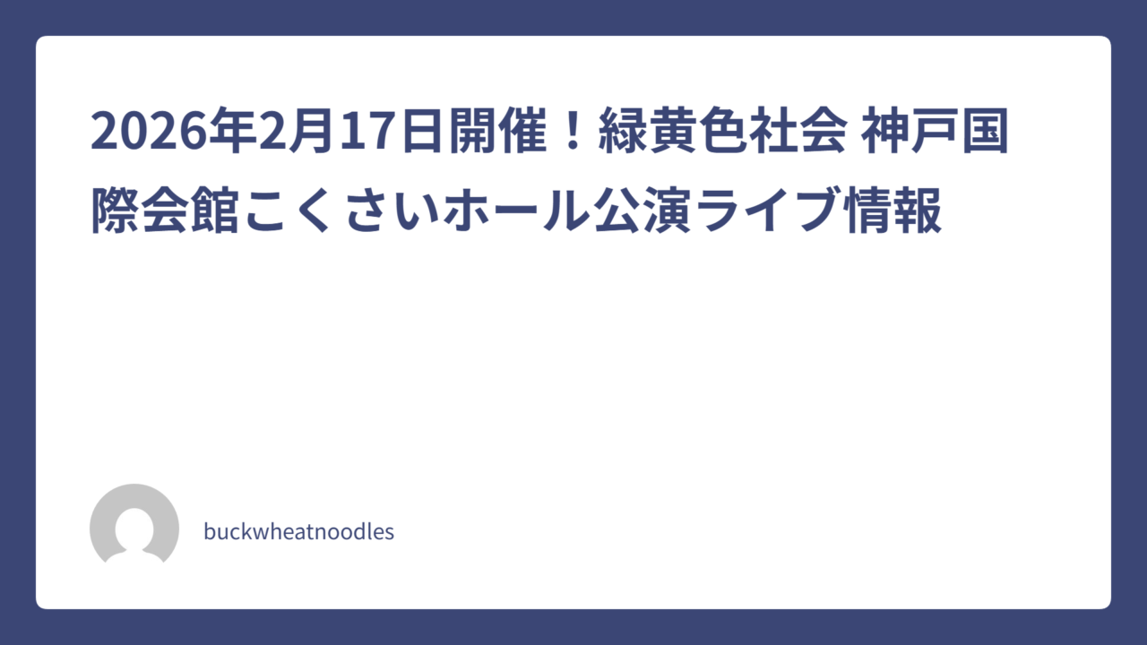 ボーカルの表現力とバンドサウンドの完成度が高い緑黄色社会にとって、ホールという空間は楽曲の繊細さをより際立たせる舞台となります。開催日ごとの検索需要も高く、2026年2月17日の神戸公演も注目度の高い日程です。