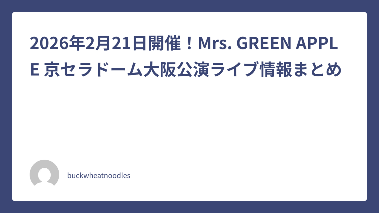 2026年2月21日、Mrs. GREEN APPLEのドーム/アリーナツアー公演が大阪府・京セラドーム大阪で開催されます。全国各地を巡る今回の大型ツアーの中でも、ドーム会場での公演は特に注目度が高い日程です。本記事では、2026年2月21日開催のMrs. GREEN APPLE 京セラドーム大阪公演について、ライブの見どころや会場情報を詳しくまとめます。