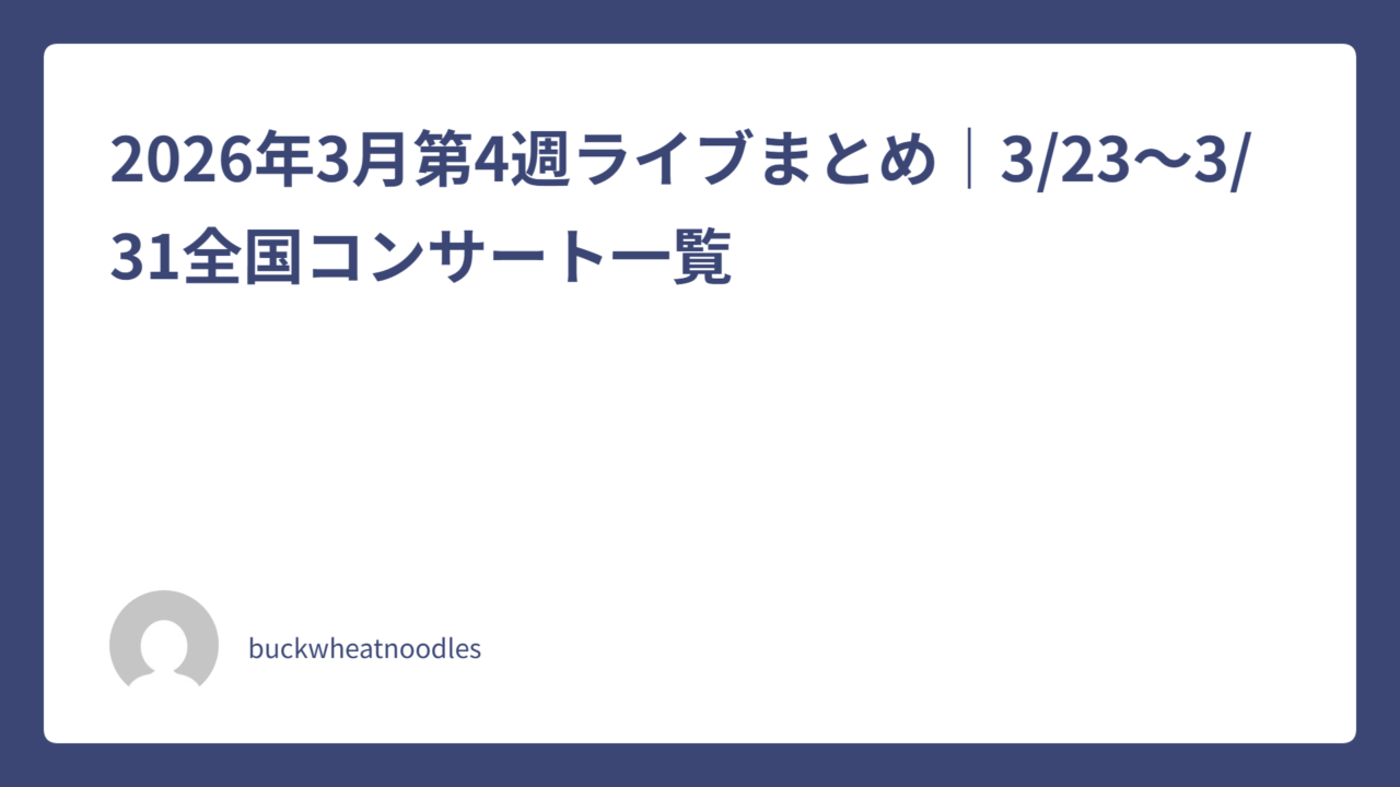 2026年3月第4週ライブまとめ|3/23〜3/31全国コンサート一覧