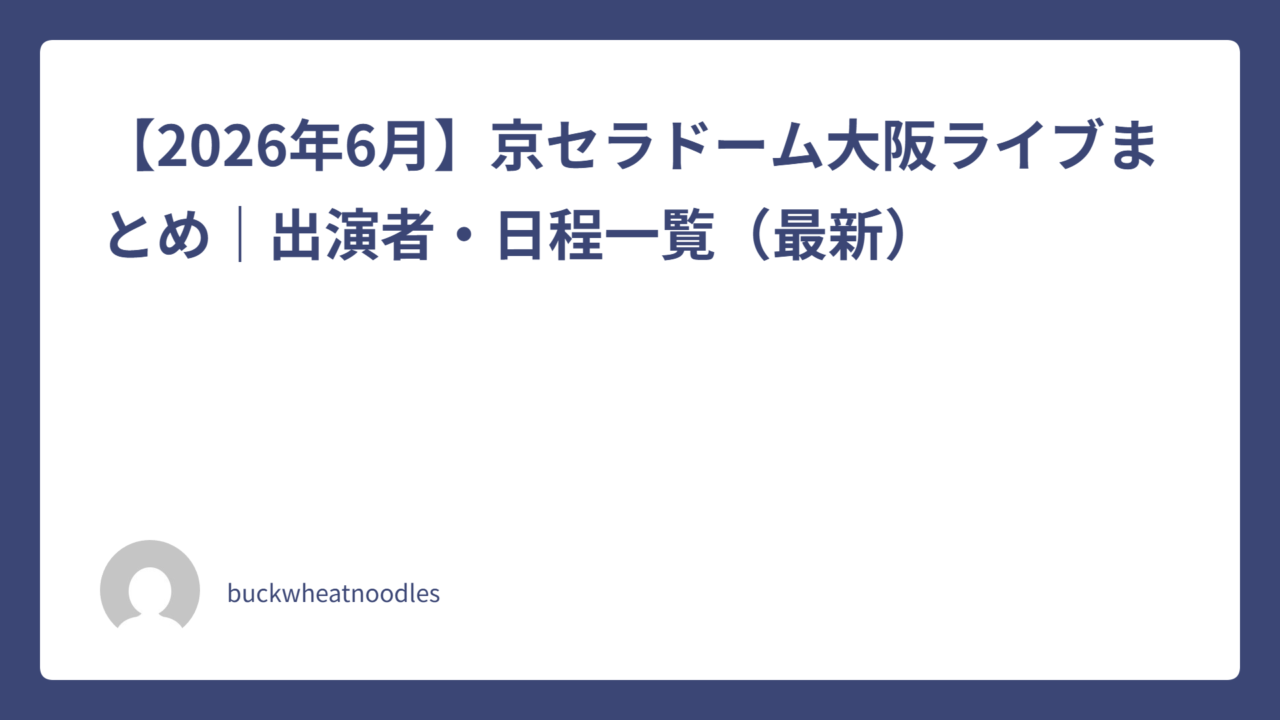 2026年6月に京セラドーム大阪で開催されるライブ・コンサート情報をまとめました。