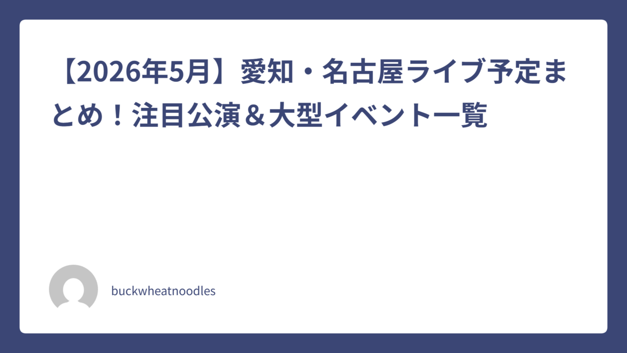 2026年5月に愛知・名古屋エリアで開催されるライブ・音楽イベントをまとめました。