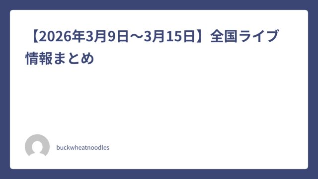 3月第2週ライブまとめ(2026年3月9日〜3月15日)