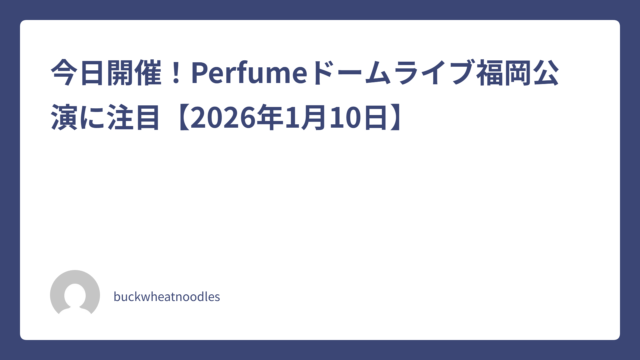 今日開催!Perfumeドームライブ福岡公演に注目【2026年1月10日】