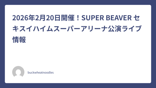 2026年2月20日開催!SUPER BEAVER セキスイハイムスーパーアリーナ公演ライブ情報